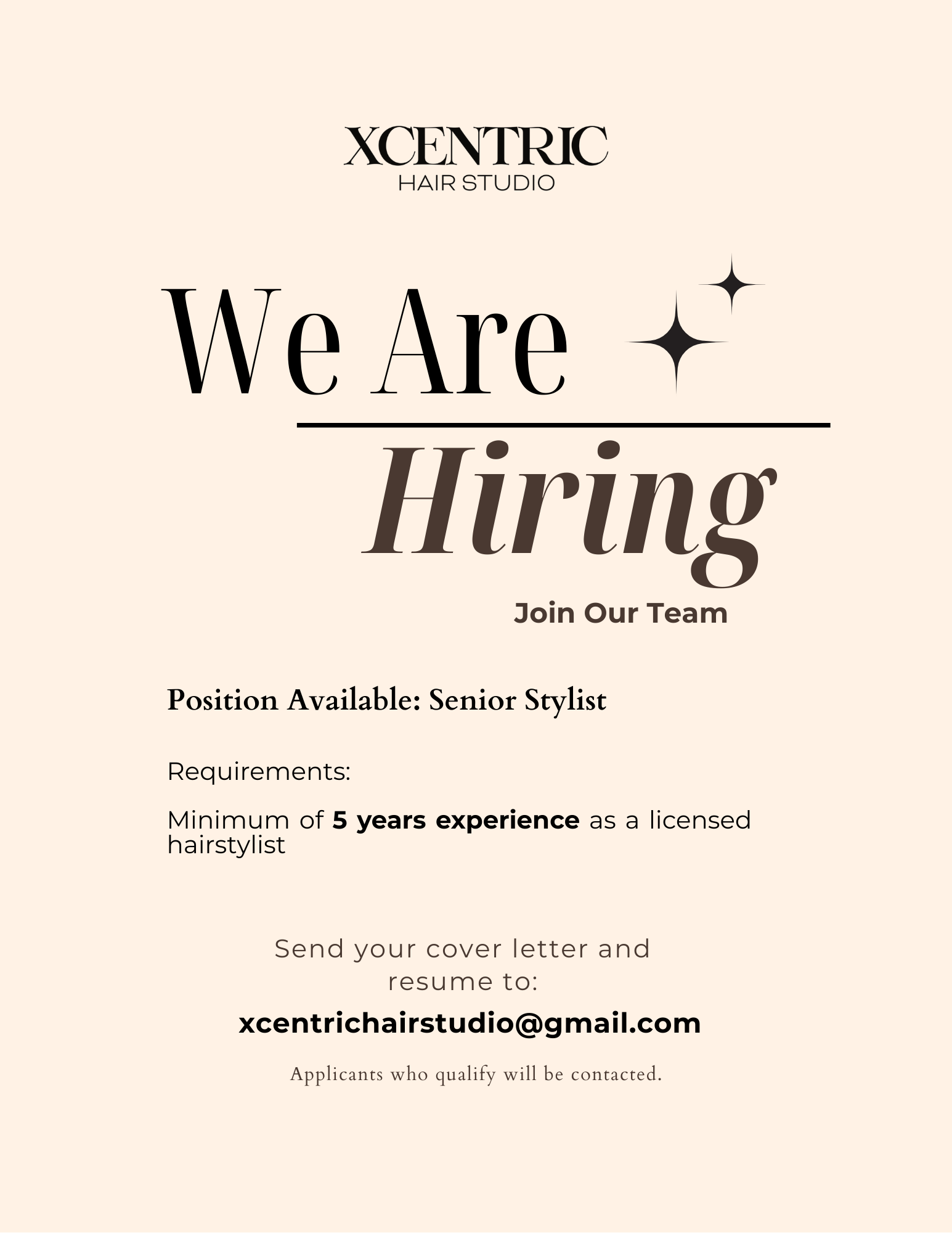 Our attentive and stylish team of hairstylists take pride in our ability to make your hair look its best. Not only do we possess the education and skill to create your desired look, but we maintain our inspiration by staying informed on current trends and techniques. The laid-back atmosphere at Xcentric is a favourable contrast to our high standards of professionalism when it comes to designing hair. Our honesty and enthusiasm about our work are undeniable traits you will notice during your thorough consultation.
